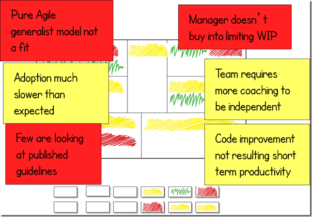 When starting to adopt agile or lean in your organization it makes the most sense to focus change on enabling Quick Wins. Rather than trying to validate whether you have the exact right set of target options for your exact context, focus on helping a small portion of the organization adopt a set of lightweight agile methods like Kanban or Scrum. This will identify major obstacles to change, some examples of these obstacles include an uninvolved executive, inattentive business owners, overly specialized organizational structure, or extremely poor morale. With quick wins you are -trying to determine if the organization is ready to adopt "any" amount of agile. And if not, what are the major obstacles, and countermeasures that can be put in place.